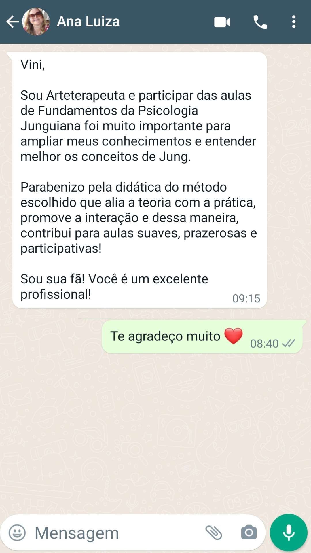 Sou graduado em Psicologia pela Universidade do Estado da Bahia onde fui cofundador do Núcleo Quíron de Extensão em Conhecimentos Junguianos. Lá ministrei o curso de Fundamentos da Psicologia Junguiana por cinco anos.